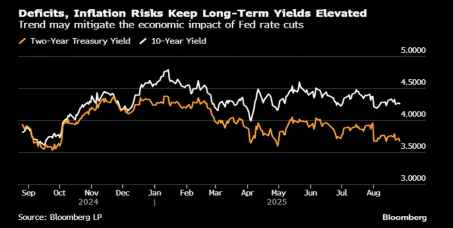 As we shift from summer to fall, change is all around. This theme was certainly on Fed Reserve members’ minds at their annual meeting in Jackson Hole. The Fed signaled that they would, in all likelihood, cut interest rates in September after being on pause since December of 2024. The Fed rate has been held at 4.25-4.50% following three rate cuts in 2024. Weakness in the labor market was a concern for the Fed, and they noted “downside risk to the labor market” may warrant a policy change. They also emphasized that inflation remains a top concern, so they may not be willing to cut rates in the future if inflation reaccelerates. We may only see one interest rate cut this year as the Fed tries to balance its dual mandate of ensuring both maximum employment and stable prices.