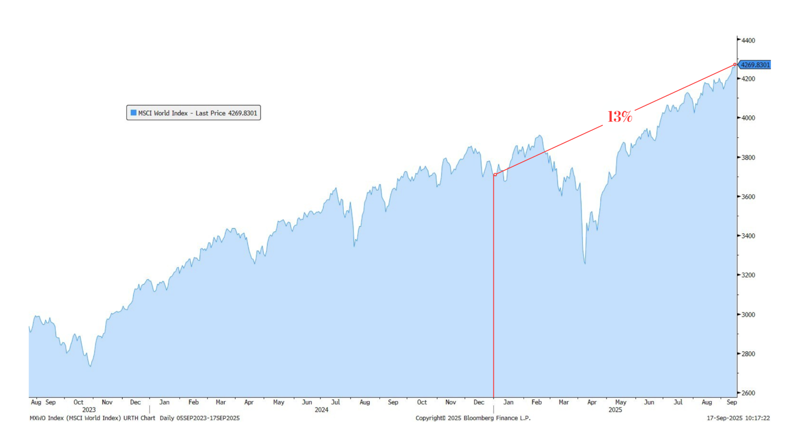 Yes, the 37% rally from the April lows is astonishing, however one must consider that it came on the heels of a 20% decline in indexes, spurred by fears that tariffs would put an end to economic growth. Fears that – in hindsight – were misguided. Not surprisingly, for those of us who study “ugly math,” most of the ensuing rally (75% of it) was simply recovering from that 20% loss! Since the beginning of the year (a more logical viewpoint) US stocks have advanced 13%, while global stocks have returned 17%. Given year-to-date return equity returns and underlying earnings growth rates (particularly for the stocks you own), the stock market is not – at least yet – overvalued.