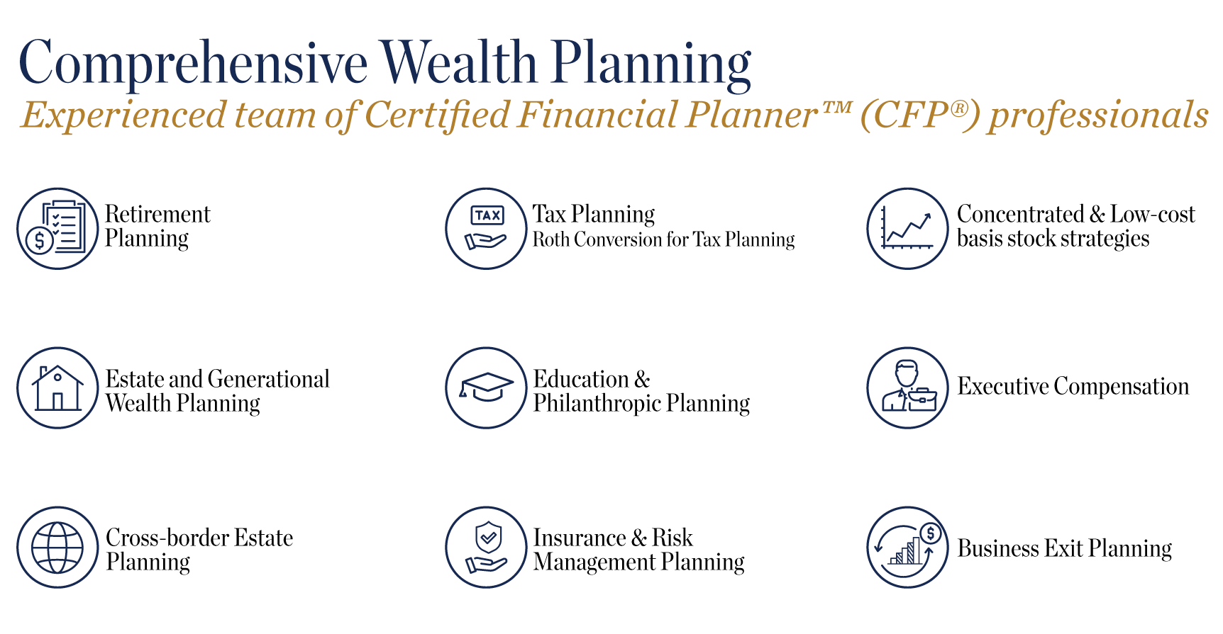 We partner with top CPAs in your area, across the country, and internationally to best understand how our work can complement tax efficient strategies for you. This is especially important for those clients with concentrated stock positions, legacy holdings, or equity compensation packages, or for those who are non-US citizens or who live abroad. This may include ideas and strategies to enhance pre-tax savings, write-offs, or tax matters related to your investment portfolio. We do not, however, complete or execute tax returns.
